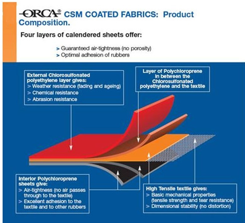 Spesifikasi Material ORCA Hypalon CRUISER : 1. ULTRAVIOLET LIGHT resistance 2. FUEL & CHEMICAL resistance 3. WEATHER resistance 4. MECHANICAL AND ABRASION resistance 5. HIGH AND LOW TEMPERATURE resistance 6. FIRE resistance